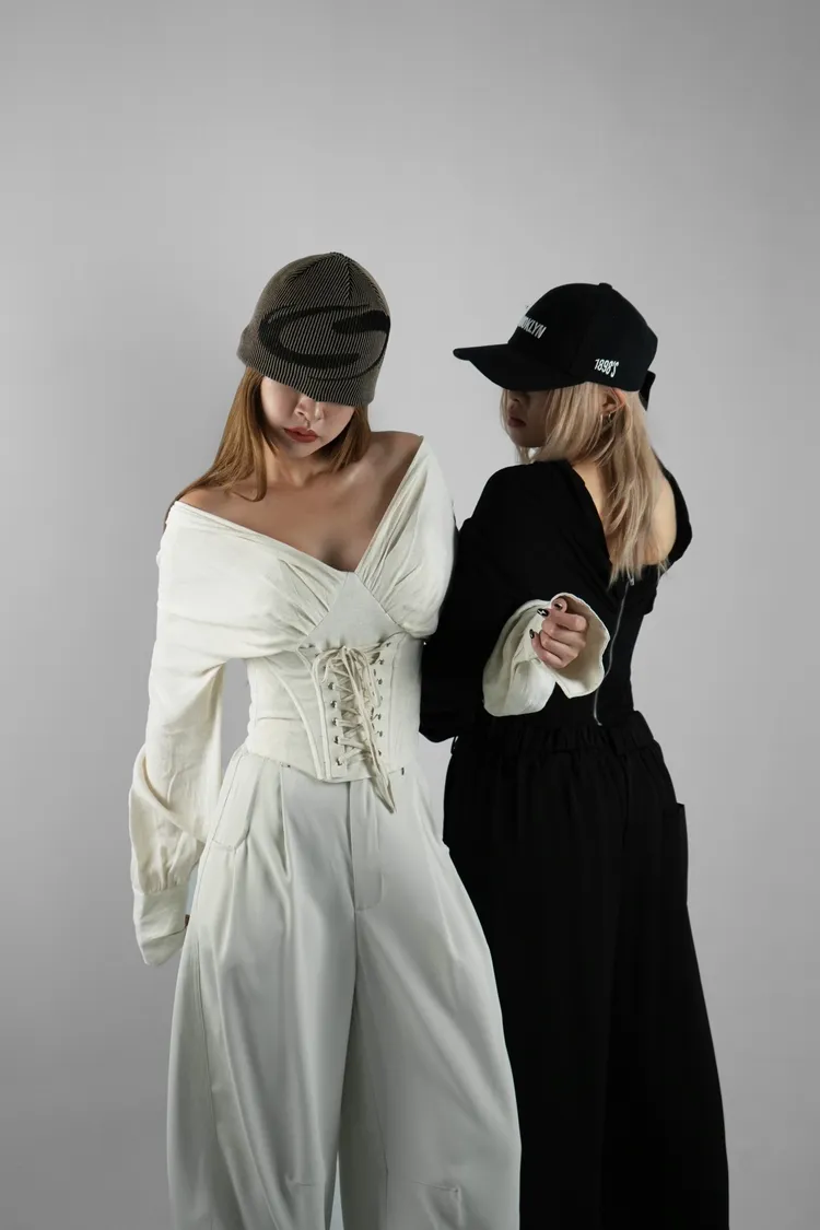 馬甲接袖綁帶上衣