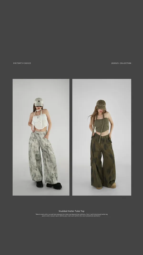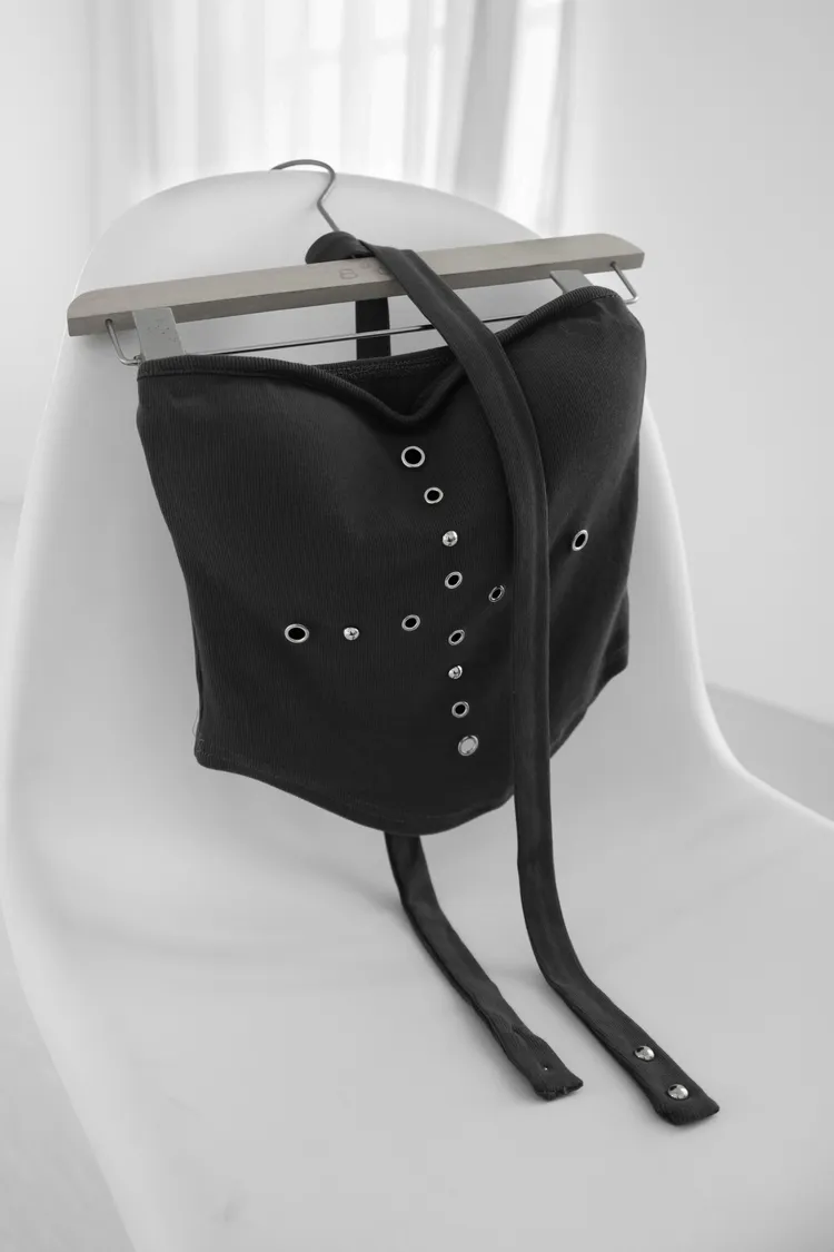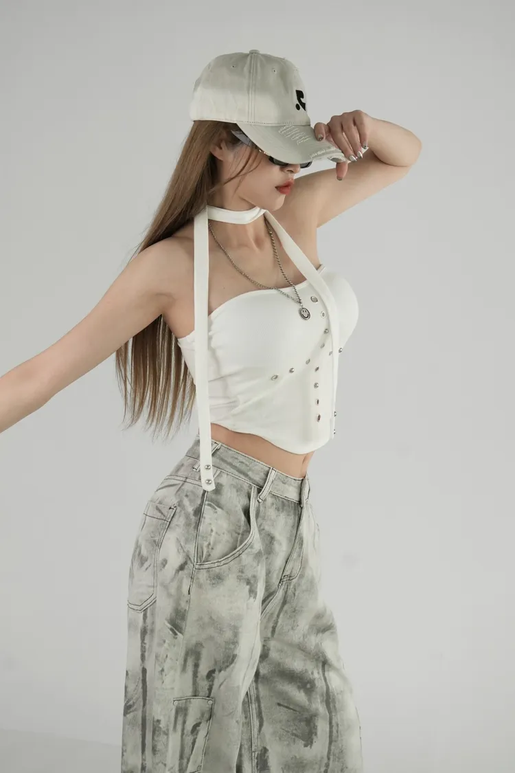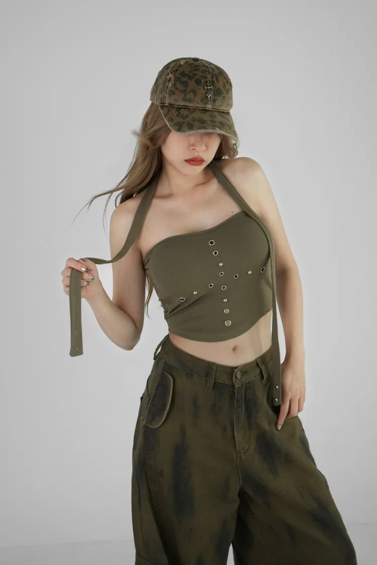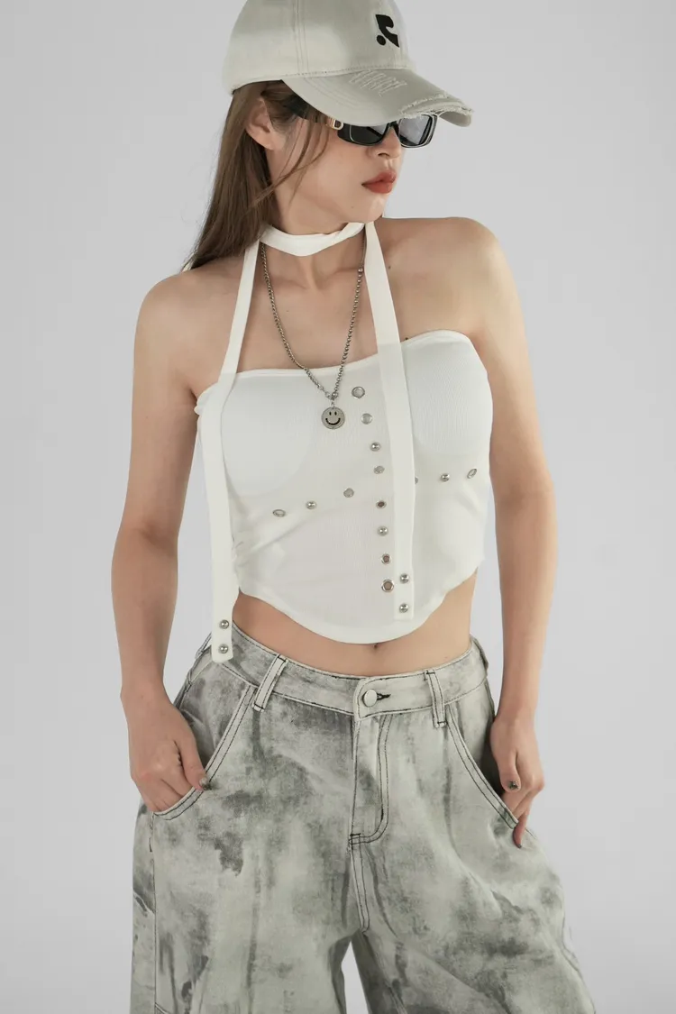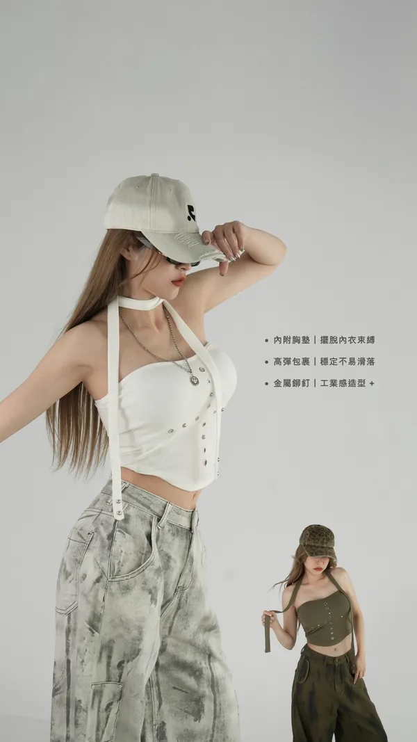 平口鉚釘繞脖上衣