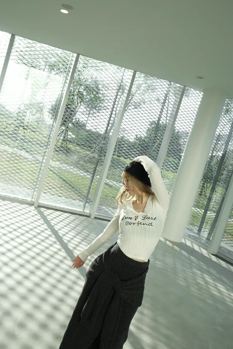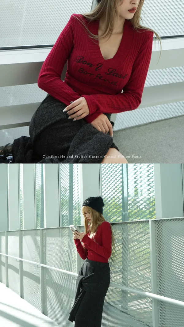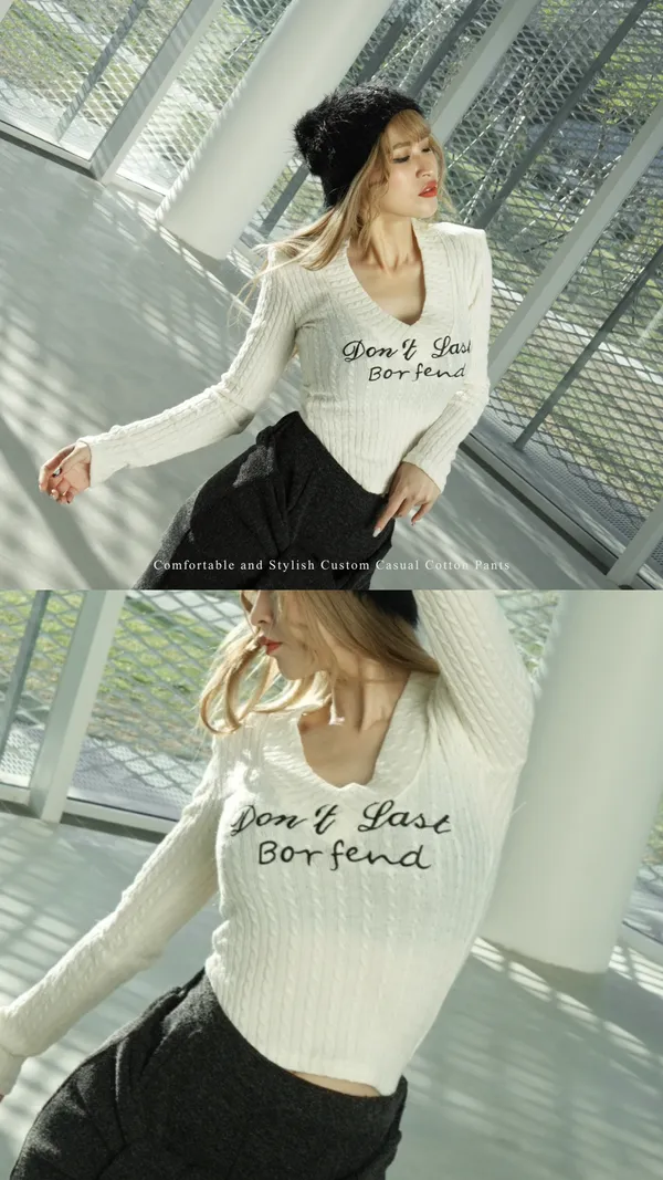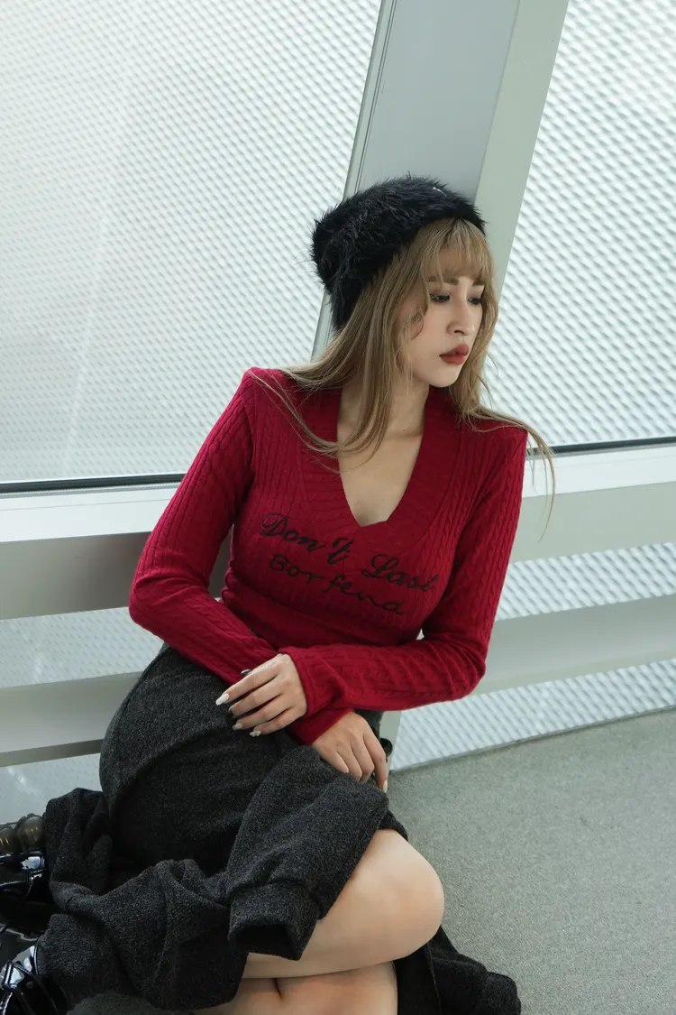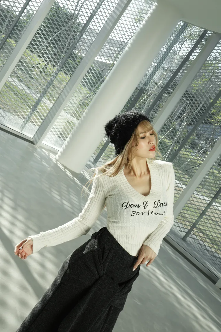 V領英文上衣