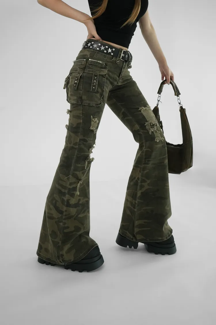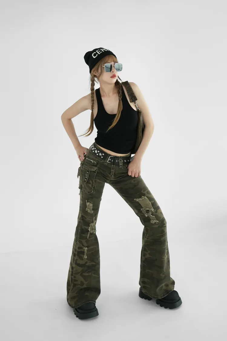米彩刷舊喇叭長褲