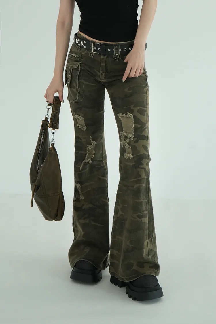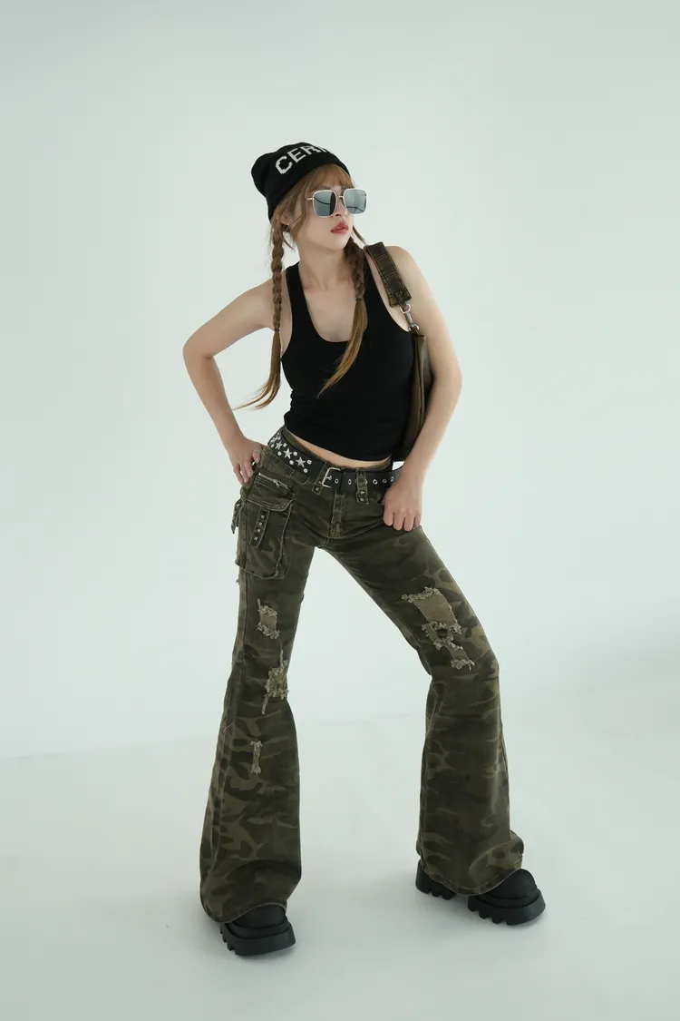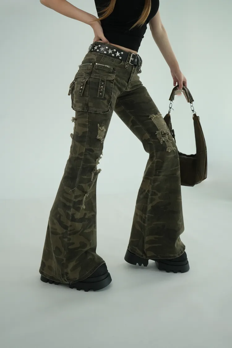 這款 米彩刷舊喇叭褲 帥氣時髦