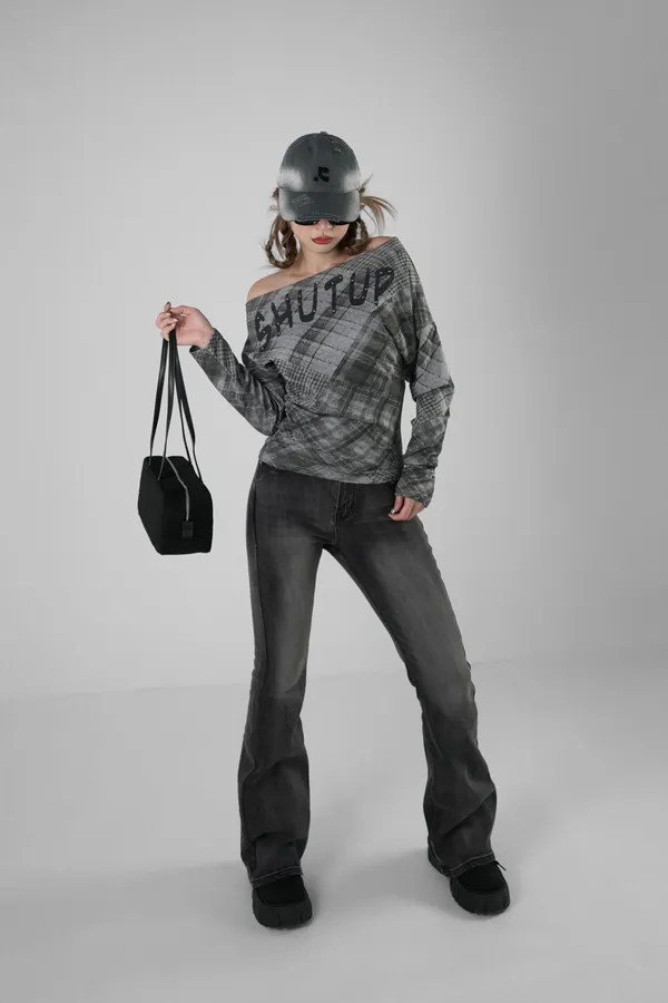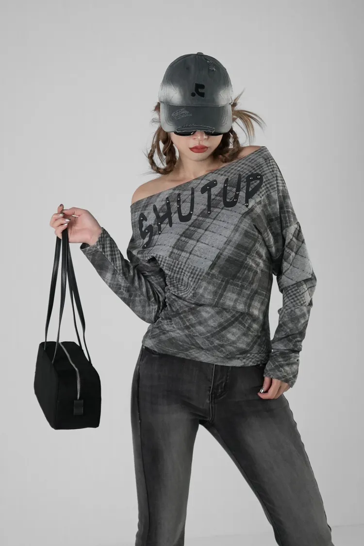 格紋平口上衣