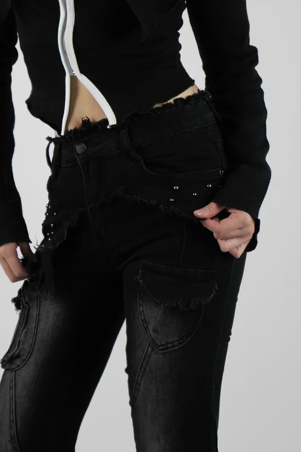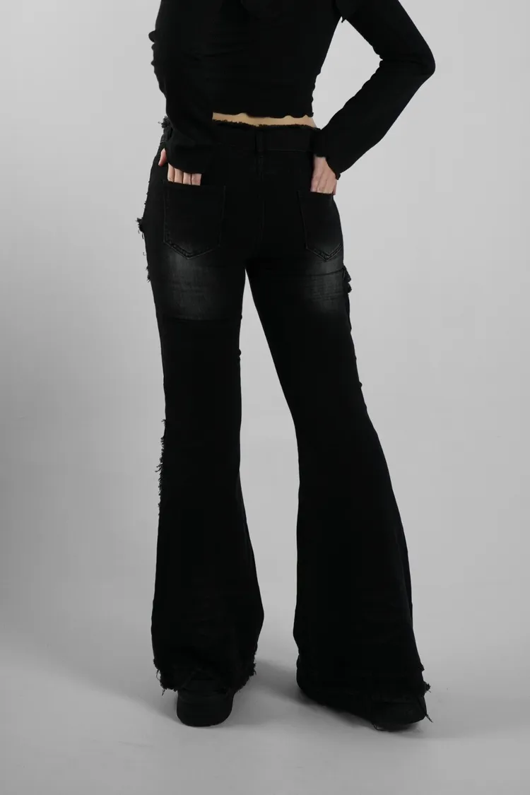 腰鬚鉚釘喇叭長褲