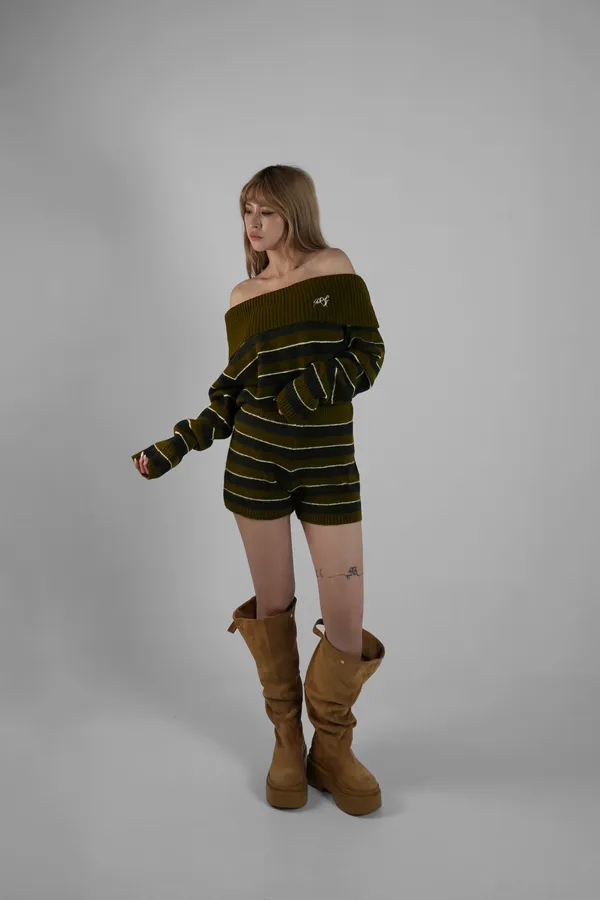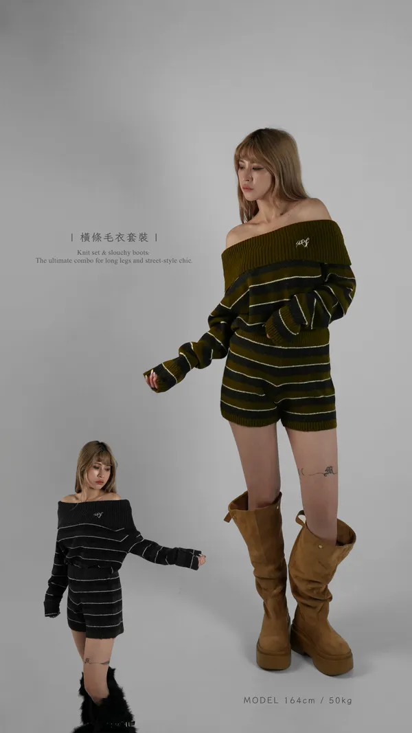 橫條毛衣套裝