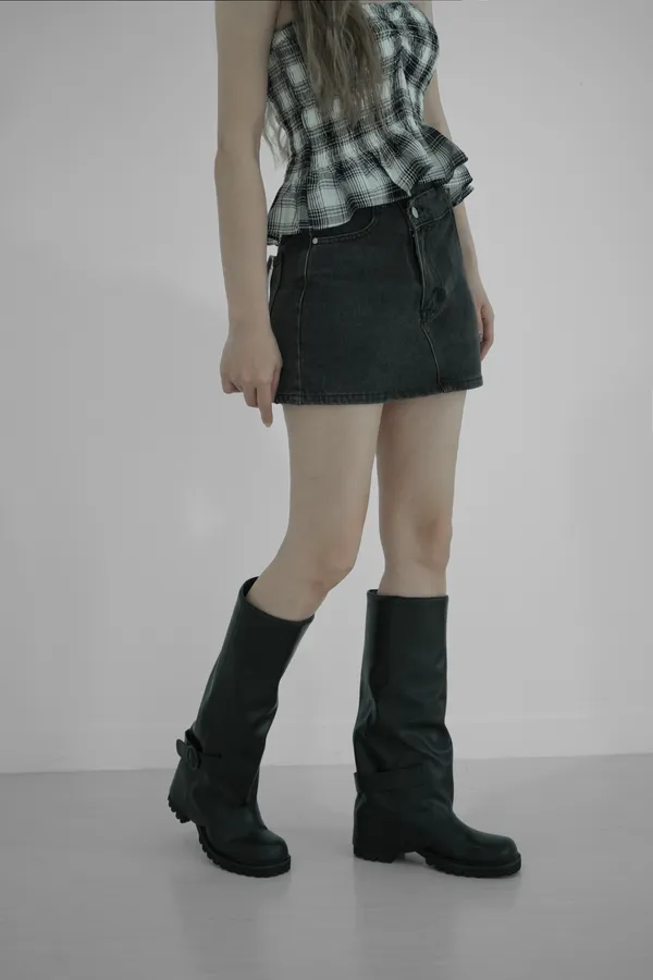 斜拉牛仔褲裙