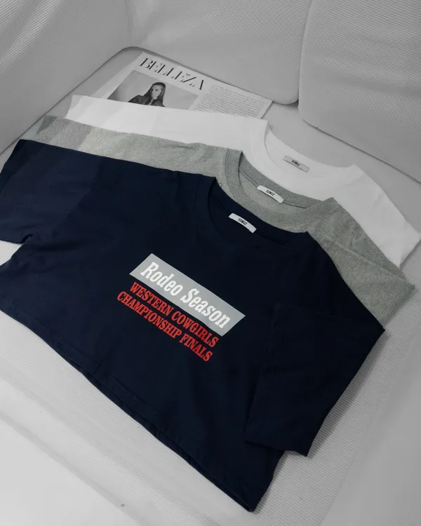 配色英文短版上衣