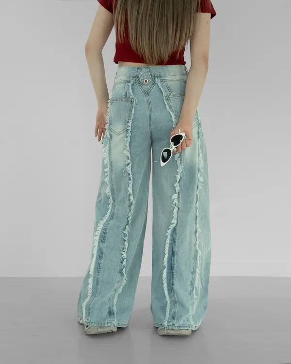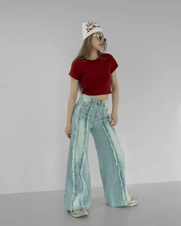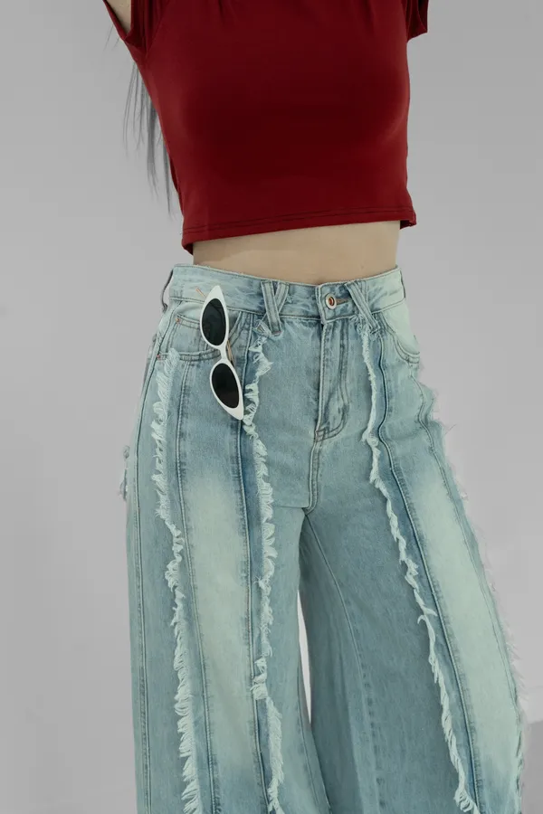 車線鬚邊牛仔長褲