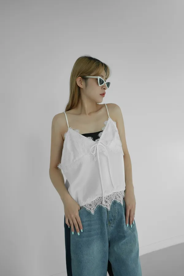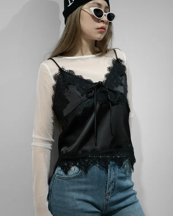 絲綢拼接蕾絲背心