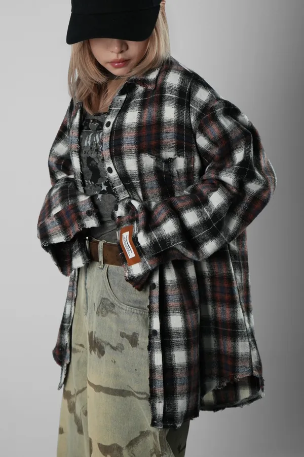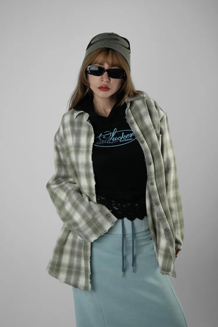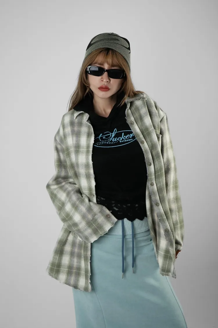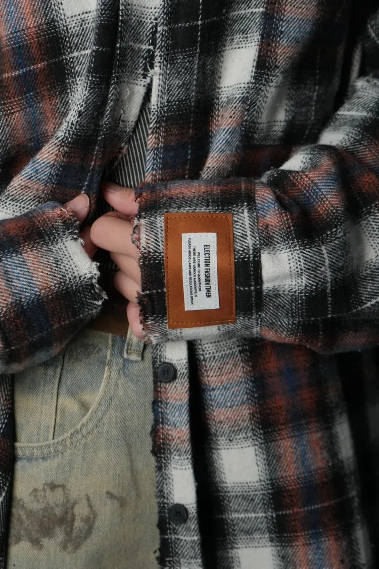 格紋貼布襯衫