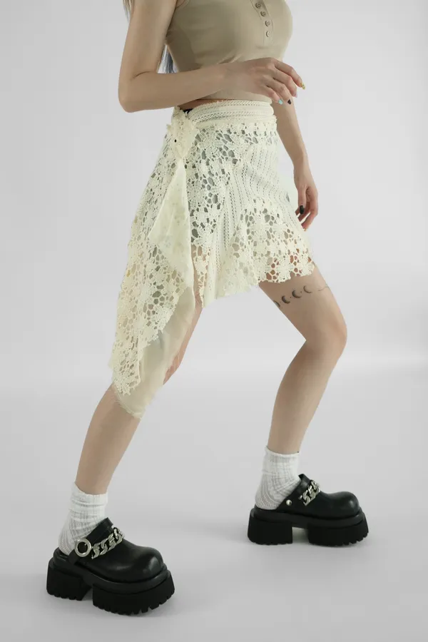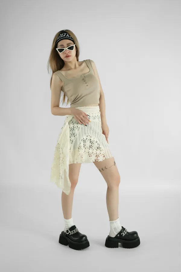 ✶斜邊裙擺,側邊可垂落