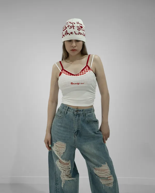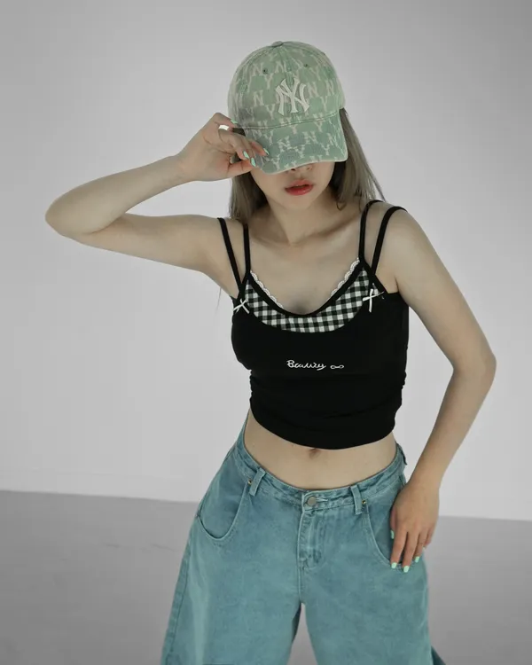 格紋假兩件背心(彈性好!!)