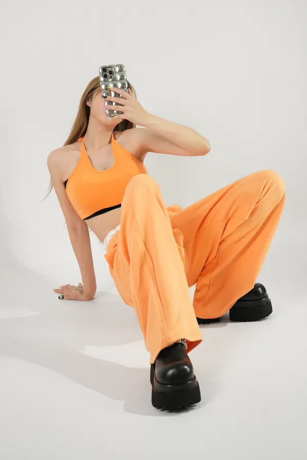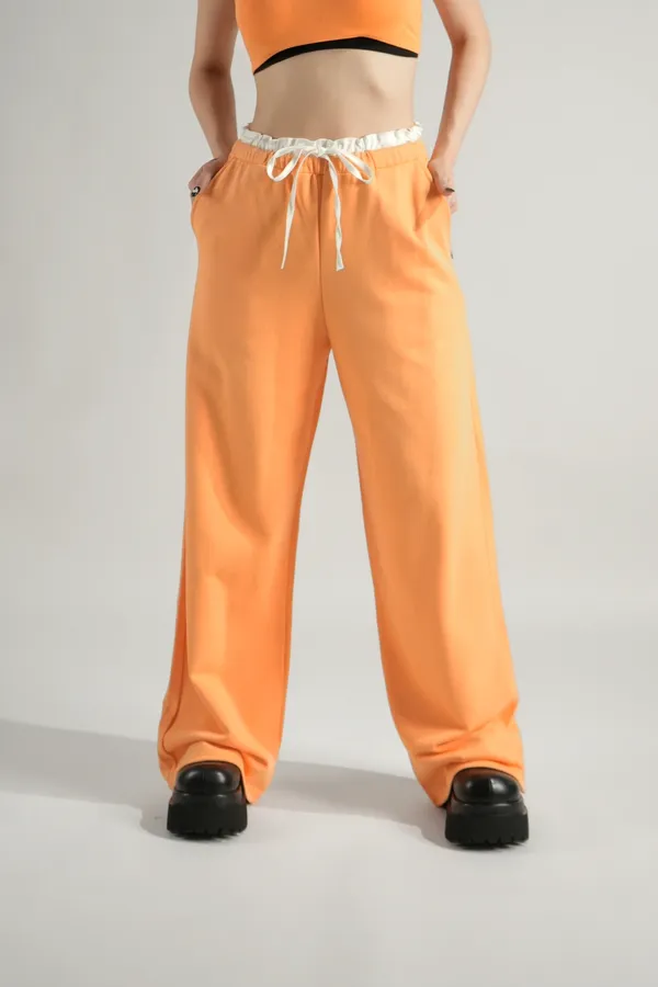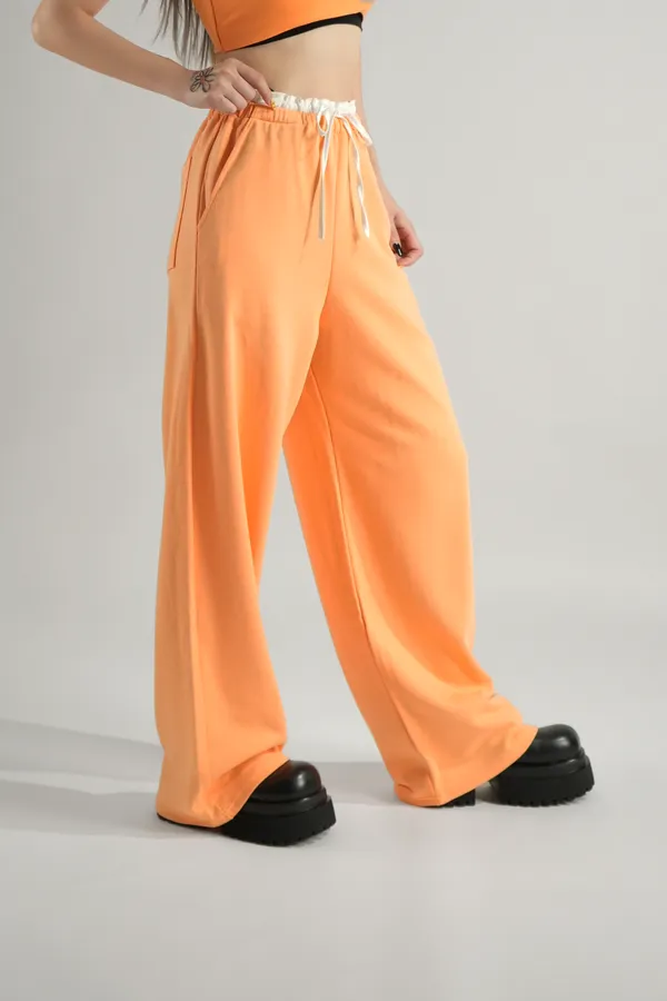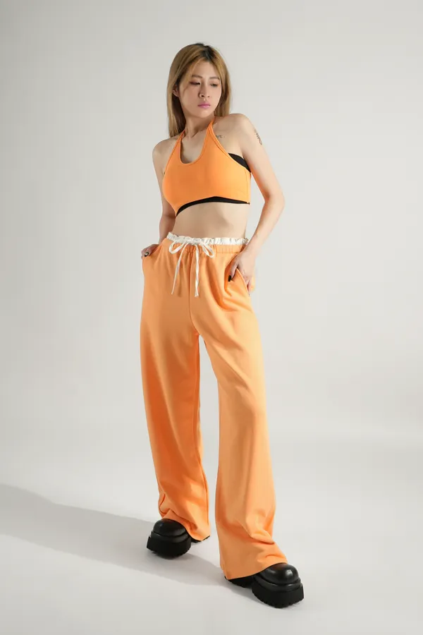 腰滾邊休閒長褲