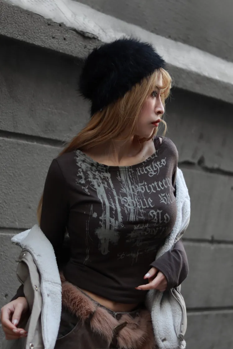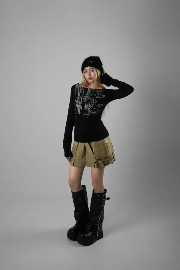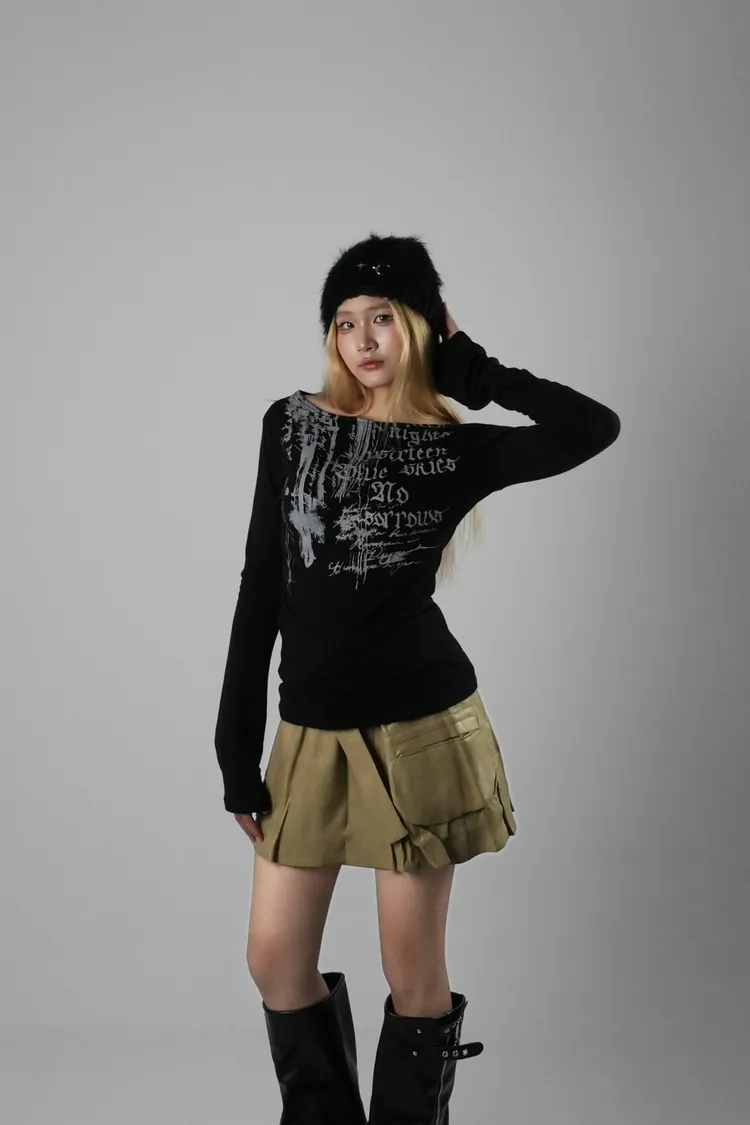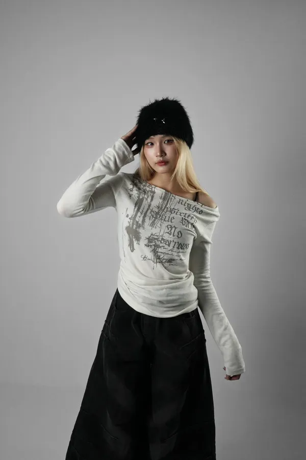 拉丁英文斜肩上衣