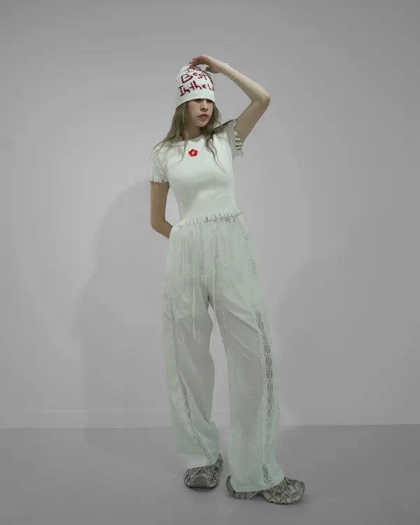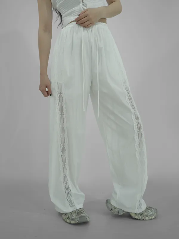 雪紡拼接蕾絲長褲