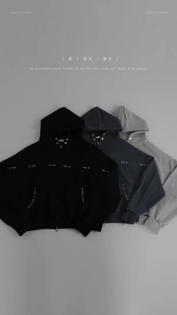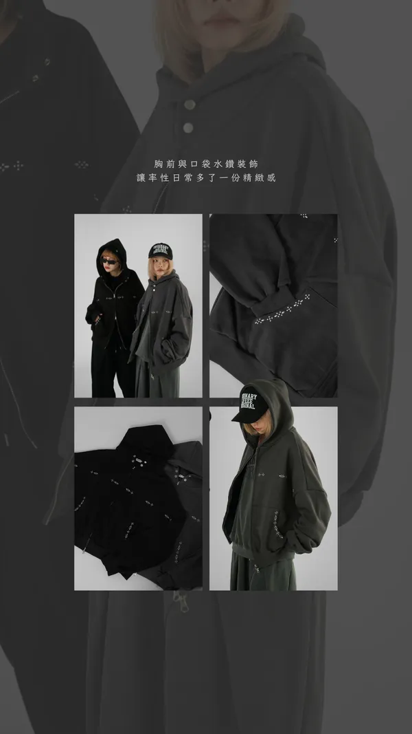 最愛胸前跟口袋的水鑽點綴,讓隨性的 Oversized 剪裁多了一份高級感✦